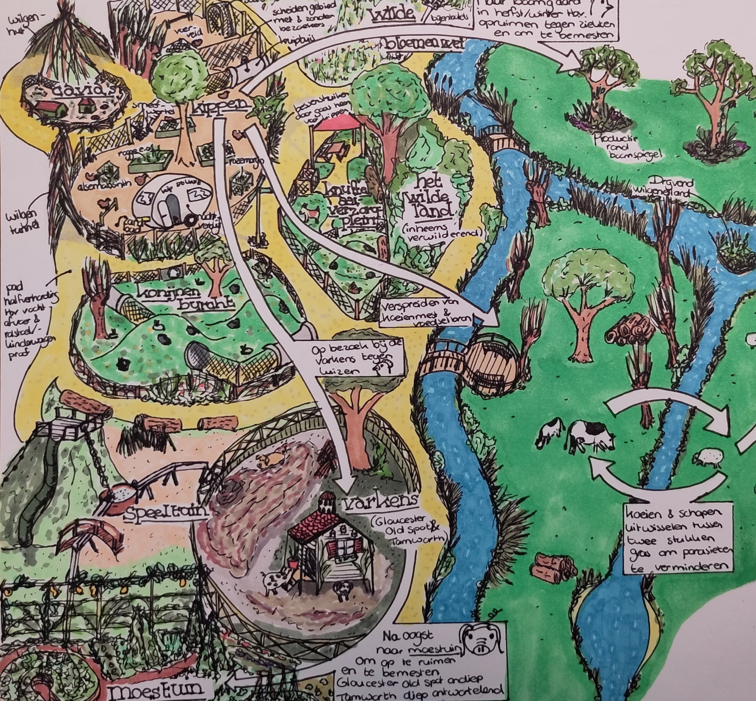 Ter ondersteuning van de gezamenlijke visieontwikkeling met de stichting Alphense Kinderboerderijen en samenwerkingspartners heb ik diverse ontwerpen gemaakt. Ontwerpen voor een meer circulaire kinderboerderij, een natuurspeeltuin, ruimte voor wilde dieren en een voedselbos ontwerp.