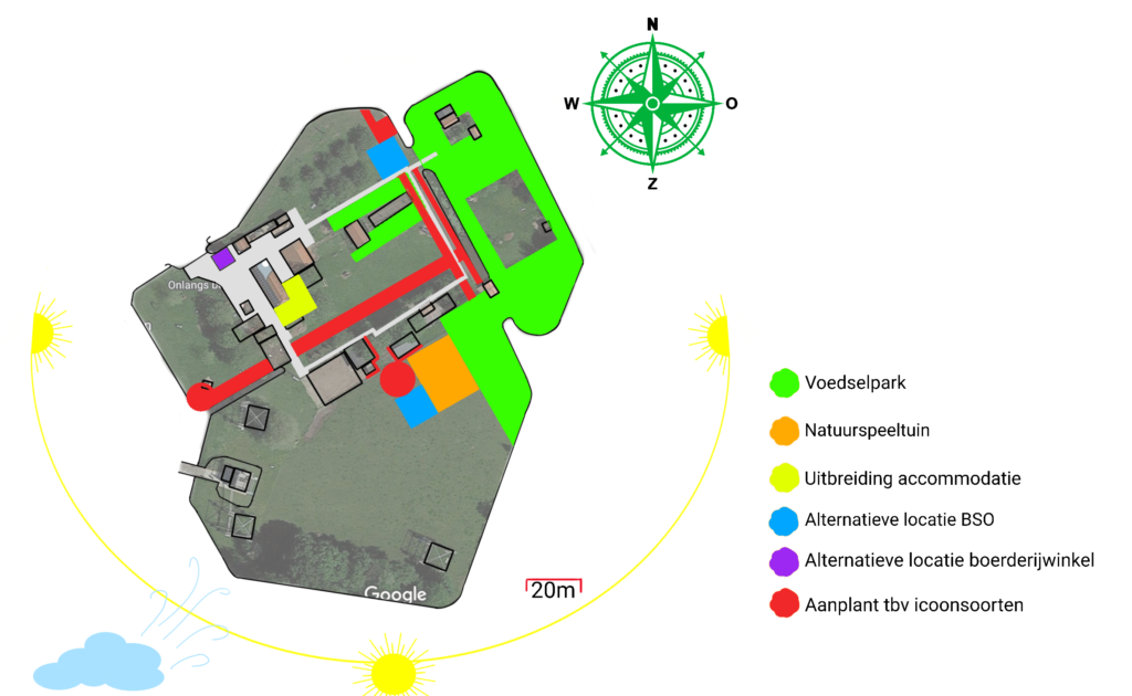 Dit ontwerp voor een permacultuur zorgboerderij met een voedselbos en speelnatuur richt zich op het creëren van een duurzame en multifunctionele ruimte. Deze boerderij combineert landbouw, zorg en educatie, waarbij een divers ecosysteem wordt bevorderd. Het voedselbos biedt een rijke biodiversiteit van eetbare planten, terwijl speelnatuur een stimulerende omgeving creëert voor kinderen en bezoekers om te leren en te spelen in de natuur. Dit ontwerp benadrukt de interactie tussen mens en milieu, met een focus op ecologische principes en sociale inclusie.