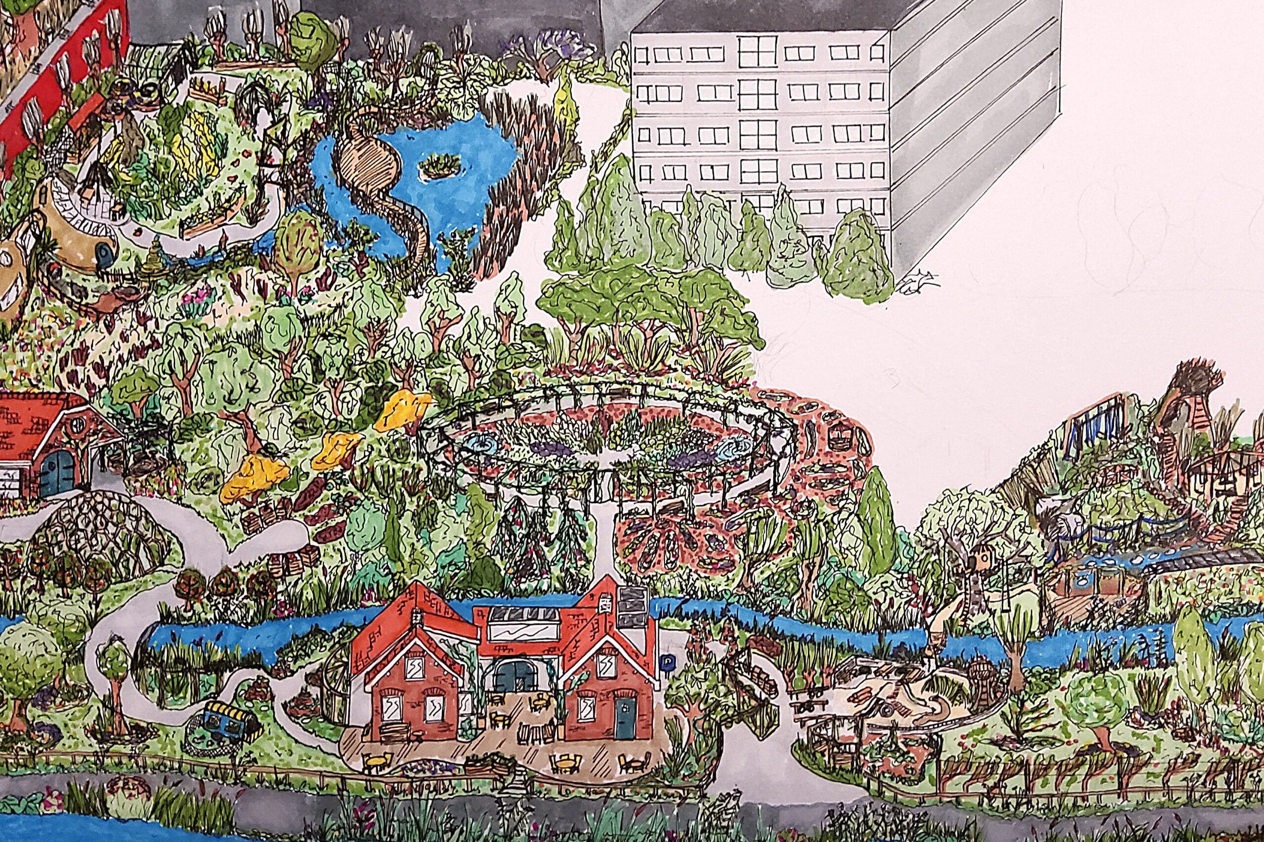 Van balkon tot landgoed. Overal zijn kansen voor een eetbaar en leefbaar paradijsje. Eetbaar, ecologisch en klimaatadaptief, maar bovenal een plek van ontspanning en plezier. Zoekt u naar manieren om ideeën zichtbaar te maken? Met de grafische landschapsontwerpen maakt de Bloeiderij uw groene ambities visueel. Ideaal als gespreksstarter, als stip op de horizon of als inspiratiebron.